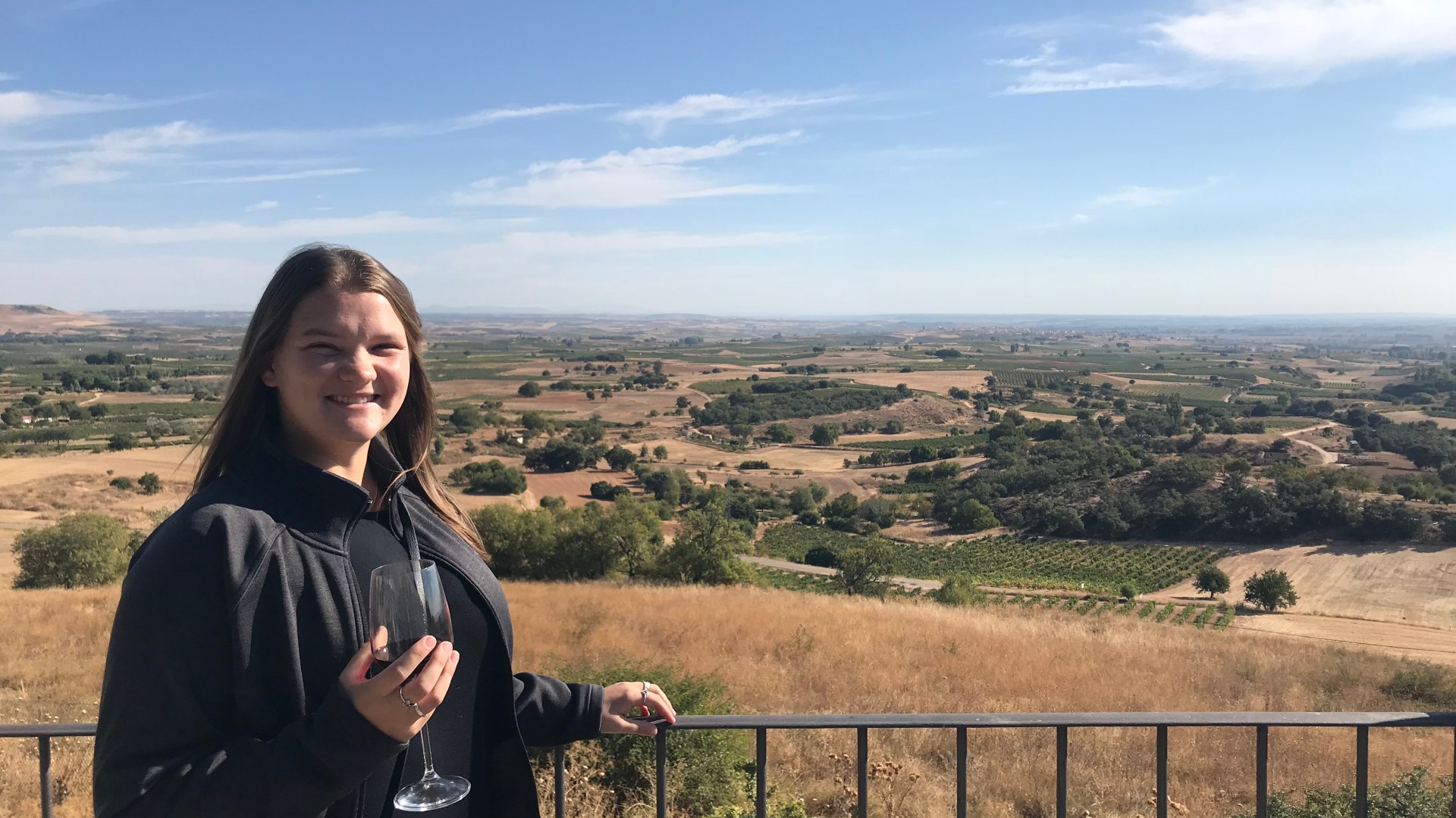 I love wines, and usually enjoy Spanish wines. One activity I knew I wanted to do while in Spain was go on a wine tour. On Saturday, I had the chance to tour the Ribera del Duero region north of Spain. I took my tour through the company Winebus, and got an awesome last minute booking deal. Our group met up in Madrid – one tour guide (Ignacio), one older couple from Mexico, and three other people around my age from Canada and New York. We all loaded up in Ignacio’s mini van, which was absolutely hysterical, and he drove us around. Unbeknownst to me when scheduling the tour, I was touring during harvest time! At each winery, I got to see the whole wine making process -workers picking grapes, people and machinery sorting grapes, machinery separating stems from grapes, and grapes going into the different fermentation containers. First we went to a little village with incredible views of the countryside. We had a glass of wine and enjoyed the view for a little while. Then we went to our first winery, Pago de Los Capellanes. We toured the winery, tasted some wines, and had some great conversation. After the wine tasting, we went to have lunch in Roa. We walked up the street to a very unassuming brown door, and stepped in to Restaurant Chuleta to find seating with absolutely breathtaking views. We got the chance to learn how roast lamb is cooked and put our own lamb in the oven. After eating several traditional dishes, we started to head out. On our way out, the older gentleman in our group said something to the restaurant owner in Spanish. I have no idea what he said, but it resulted in the owner getting his guitar and the two of them singing a song. Then the owner grabbed a bottle of sparkling wine, lit a sparkler on top, sang another song and let us go down to the old wine cellar below the restaurant to explore and drink the sparkling wine. After exploring as far as we could without getting caught in cellar mud, we loaded up to go visit a second winery – El Lagar de Isilla. We tasted more wine, snacked on cheese and sausage, and had more wonderful conversation. Overall, getting to see some of the countryside, meet some amazing people and try some really great wines was a fantastic way to spend a Saturday. Next time I come to Madrid, I will definitely be taking one of Ignacio’s other wine tours to a different region of Spain.