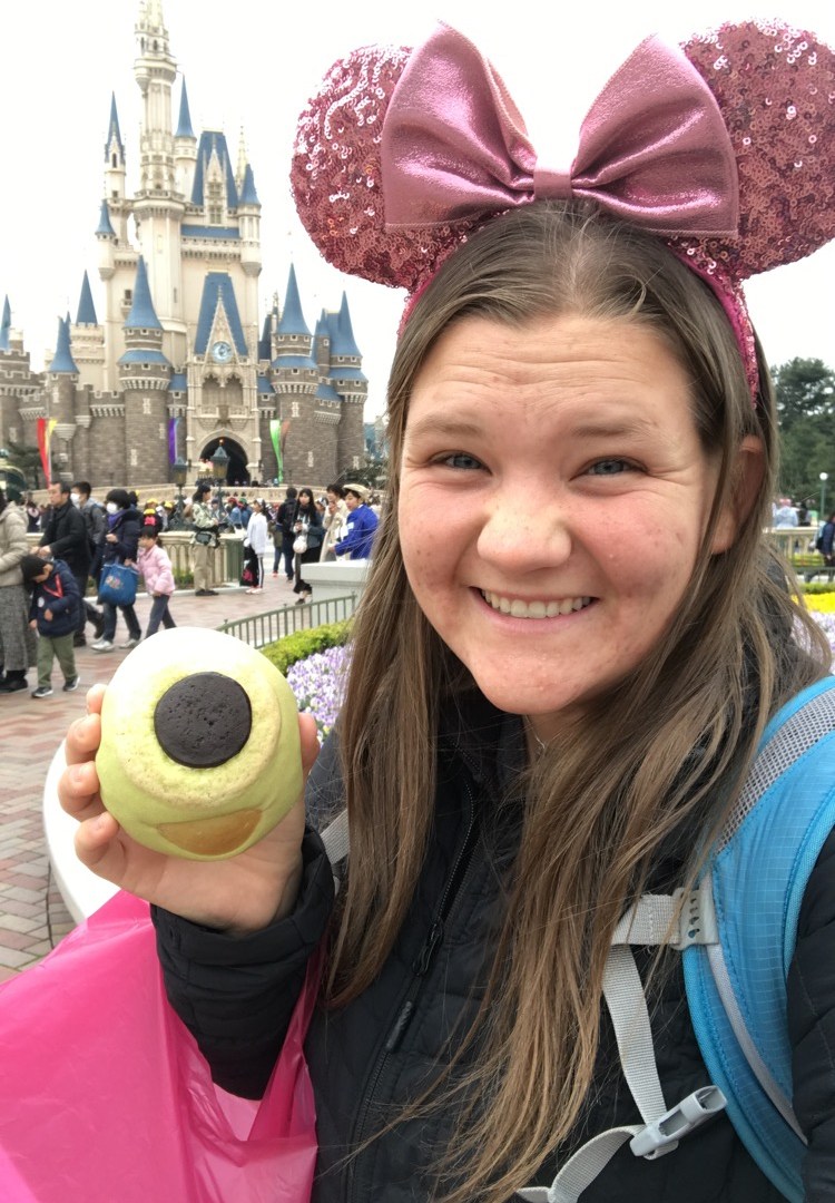 I began my weekend by getting a coffee at Ikspiari, the Tokyo Disneyland mall version of Downtown Disney or Disney Springs. I then rode the monorail around to see the resort. The monorail is actually run by one of the public transportation systems in Tokyo, and you have to pay to use it. Luckily, Tokyo IC cards are accepted, so it was no big deal to tap on and off the monorail. After riding the monorail the first time, I was better able to visualize the layout of the parks and learned that you definitely do not have to take the monorail to get to the entrances. The parks are built right next to each other, but unlike at Disneyland, the entrances are not facing each other. This allows for the same fireworks show to be seen from both parks. Once entering Tokyo Disneyland park, I knew I wanted to begin with the attractions only found in Tokyo: Monsters Inc. Ride and Go Seek and Pooh’s Honey Hunt. I immediately got a fastpass for Monsters Inc. Ride and Go Seek since it is the first attraction to run out of fastpasses each day. I then went and got in line for Pooh’s Honey Hunt. Pooh’s Honey Hunt utilizes the same trackless technology as the Ratatouille ride in Disneyland Paris. The story you move through is similar to the story from Disneyland and Walt Disney World, but is more interactive because of the ability for the honey pot vehicle to move more throughout the attraction. Monster’s Inc. Ride and Go Seek reminded me of a child focused version of Universal’s Men in Black attraction. In the attraction, you ride through Monstropolis shining a flashlight on as many monsters as you can. They react when you shine the light on their helmets. It is very precious. I spent the rest of the day riding other attractions, watching the parades, eating SO much food, and enjoying the atmosphere. My favorite foods from the day were Mike shaped melon bread, green alien shaped mochi dumplings, and a Mickey glove shaped sweet and sour chicken sandwich. During the evening parade, it started to rain. It was an incredibly cold rain. I froze, but loved being in an essentially empty park. After the nighttime spectacular castle show and fireworks show presented between the two parks, I decided to start the hour trek back to the airbnb to warm up and dry my shoes in preparation for day two on Sunday!